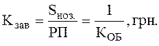 де S1, S2, …S12 – середньомісячні залишки нормованих оборотних коштів, грн. 2. Коефіцієнт завантаження (Кзав) показує, яка вартість оборотних засобів припадає на 1 грн вартості випущеної продукції: