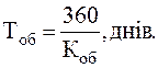 3. Тривалість обороту (Тоб) показує тривалість одного обороту оборотних засобів у днях і визначається за формулою:
