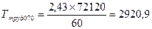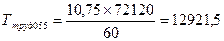 Приймаємо у розрахунках Приведений випуск деталей (Ппр) – це умовна кількість типових деталей, трудомісткість обробки яких дорівнює трудомісткості обробки всіх деталей, що закріплені за дільницею, визначається виходячи із виробничої потужності дільниці та найбільш раціонального використання обладнання за формулою: Ппр = де Фд – ефективний річний фонд виробничого часу обладнання, годин; Кз – плановий коефіцієнт завантаження обладнання; для середньосерійного типу виробництва Кз = 0, 8 Тшт – норма штучного часу на ведучій операції, хв; Тшт = 2, 34 хв. α – коефіцієнт допустимих витрат на переналагодження обладнання; для середньосерійного виробництва α = 0, 08. Ппр = Приймаємо Ппр = 72 120 штук. 2.2 Визначаємо річну трудомісткість на операції технологічного процесу
