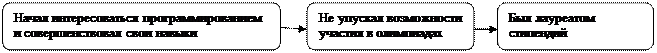 Каждый текст-повествование имеет следующую структуру: - развитие действия; - развязка (окончание события, завершение повествования). Задание 1. Схема текста-повествования. Составьте схему к тексту, особое внимание обращая на элементы его структуры. Схему составьте в виде блоков, в которых записаны глаголы и глагольные сочетания, называющие ключевые действия. Каждому предложению должен соответствовать один блок. Павел Дуров из Санкт-Петербурга с 11 лет начал активно интересоваться программированием и постоянно совершенствовал свои знания и навыки в этой области. Будучи студентом, он не упускал ни одной возможности участия в различных олимпиадах. Дуров был лауреатом стипендий президента и правительства Российской Федерации, троекратным лауреатом стипендии Владимира Потанина. 1 октября 2006 года 22-летний Павел и его команда зарегистрировали домен vkontakte.ru. С этого дня началась официальная история развития самой популярной на сегодняшний день социальной сети на территории РФ и стран СНГ. В 2007 году сайт " Вконтакте" занял топовое 3-е место по популярности в России. В 2008 году сайт встретил своего 20-миллионного пользователя. На конец 2010 года рыночная стоимость компании ООО " Вконтакте" оценивалась в 1, 5$ млрд. Состояние Дурова оценивается в 300$ млн. На странице Павла Дурова есть такое высказывание: " Помните: вас - тех, кто может что-то делать, а не разговаривать, - очень мало. Гораздо меньше, чем кажется. Не надо тратить свое время впустую. Действия, а не слова приводят человека к успеху".