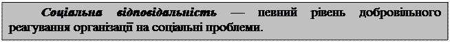 Менеджмент ділових організацій несе перед суспільством подвійну відповідальність: юридичну і соціальну.