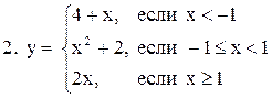 Функция задана тремя аналитическими выражениями, представляющими собой элементарные функции, которые непрерывны во всех точках, где они определены. Функция Исследуем на непрерывность функцию в точке 1. 2.
