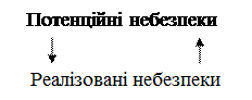 Прихована (потенційна) небезпека проявляється за певних, часто важко передбачуваних умов і реалізується у формі надзвичайних ситуацій, захворювань чи травм. Кількісна оцінка небезпеки називається ризиком. З поняттям ризику часто пов'язують уявлення про можливі чи загрожуючи події. Тому існує точка зору, що такої події треба уникнути за будь-яку ціну. Взагалі зустрічається різне розуміння терміна «ризик» і в нього іноді вкладають зміст, який вельми відрізняється один від одного. Однак загальним у всіх цих уявленнях є те, що ризик містить якусь невпевненість - відбудеться ця небажана подія і виникне цей неблагополучний стан, чи ні. Ризик - це міра очікуваної невдачі, неблагополуччя в діяльності й існуванні; небезпеки, пов'язані з погіршенням здоров'я людини, змінами в довкіллі, матеріальними витратами. Ризик - це відношення числа тих чи інших фактичних проявів небезпеки до їх можливого теоретичного числа за певний період часу. Ризик - частота реалізації небезпеки.