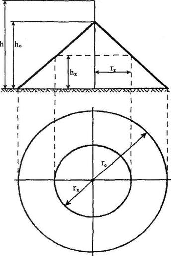 Мал. 8. Зона захисту одиночного стержньового блискавковідводу висотою до 150 м.