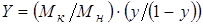 где L - расход абсорбента, кг/ч; G - расход инертного газа, кг/ч; Yн, Yк - начальная и конечная концентрация абсорбтива в газовой смеси, относительные массовые единицы; Xн, Xк - начальная и конечная концентрация абсорбтива в поглотителе, относительные массовые единицы. Относительные массовые концентрации абсорбтива в воздухе находят по формуле:
