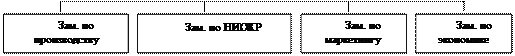 Рисунок 3.6 — Дивизиональная продуктовая структур Дивизиональные организационные структуры управления по сравнению с линейно-фукциональными имеют следующие преимущества: - ориентируют персонал на достижение конечных результатов деятельности компании (производство конкретных видов продукции, удовлетворение потребностей конкретного потребителя, насыщение товарами конкретн6ого регионального рынка); -переносят ответственность за получение прибыли на уровень дивизионов; -позволяют концентрировать внимание высшего руководства на стратегическом планировании и управлении организацией; -способствуют деловой карьере руководителей отделений; -улучшают развитие коммуникаций; - обеспечивают более оперативное принятие управленческих решений; - легче адаптируются к изменениям рыночных условий и внешней среды; - успешнее функционируют при неценовой конкуренции; - ориентированы на освоение новых рынков и технологий; - лучше приспособлены к диверсификации продукции. Недостатки дивизионалъных ОСУ: - расширение самостоятельности отделений может привести к различным взглядам между центральным аппаратом и руководством отделений по решению управленческих задач. Это способствует возникновению конфликтных ситуаций; - создание отделений увеличивает количество уровней иерархии управления; - в дивизиональных организационных структурах управления усиливается дублирование функций и операций, выполняемых на разных уровнях управления; - значительно возрастает численность управленческого персонала по сравнению с линейно-функциональными организационными структурами.