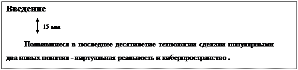 Текст работы должен быть набран на компьютере шрифтом Times New Roman размером 12пт. Шрифт, используемый в иллюстративном материале (таблицы, графики, диаграммы и т.п.), при необходимости может быть меньше, но не менее 10 пт. Межстрочный интервал в основном тексте – полуторный. В иллюстративном материале межстрочный интервал может быть одинарным. Поля страницы можно использовать стандартные, установленные в соответствующем текстовом редакторе, но они не должны быть менее: - левое поле – 30 мм, - правое поле – 15 мм, - верхнее и нижнее поле – 20 мм. Каждый абзац должен начинаться с красной строки. Отступ абзаца – 12, 5 мм от левой границы текста. Каждый абзац должен содержать законченную мысль. Слишком крупный абзац затрудняет восприятие смысла и свидетельствует о неумении четко излагать мысль. При печати работы необходимо установить запрет " висячих строк", то есть не допускается перенос на новую страницу или оставление на предыдущей странице одной строки абзаца, состоящего из нескольких строк. Следует избегать также оставления на последней строке абзаца одного слова или даже части слова. В этом случае лучше изменить формулировку предложения так, чтобы на последней строке абзаца оставалось не менее трех-четырех слов. При необходимости установки между словами неразрывного формата словосочетания необходимо совместным набором клавиш с клавиатуры набрать: Shift+Ctrl+ пробел. (Пример неразрывного словосочетания: А. П. Чехов, т.е. при последовательном заполнении строки перед этой фразой при наборе текста, «А.П. Чехов» будет полностью переноситься на следующую строку.) Каждая глава работы должна начинаться с новой страницы. Параграфы следуют друг за другом без вынесения нового параграфа на новую страницу. Не допускается начинать новый параграф внизу страницы, если после заголовка параграфа на странице остается три-четыре строки основного текста. В этом случае параграф необходимо начать с новой страницы. Каждый параграф должен отделяться от предыдущего текста 2-м интервалом (15 мм). Расстояния между заголовком главы и последующим заголовком параграфа должно составлять 10 мм (1 интервал). Заголовки глав, а также заголовки введения, заключения, содержания и списка литературы должны быть напечатаны прописными буквами и располагаться слева в строке. Заголовки параграфов начинаются с прописной буквы, последующие буквы – строчные. Заголовки параграфов начинаются с левого края страницы. Главы нумеруются арабскими цифрами (1, 2, 3). Слово " Глава" не пишется. Параграфы нумеруются арабскими цифрами в пределах главы (1.1, 1.2, 1.3, и т.п.). После цифры ставится точка и пишется соответствующий заголовок. Точка в конце заголовков (глав, разделов, параграфов) не ставится. Пример оформления заголовков глав и параграфов Пример 1.