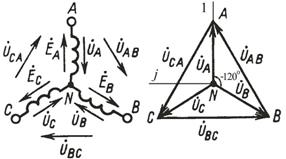 линейные напряжения (рисунок 4.3 б)