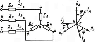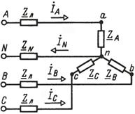 Несимметричный режим. При соединении приемника звездой с нейтральным проводом (рисунок 4.8)