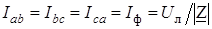 а) б) Рисунок 4.7 – Схема (а) и векторная диаграмма (б) трехфазной цепи при соединении нагрузки треугольником По модулю токи равны и имеют сдвиг по фазе относительно друг друга, равный
