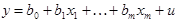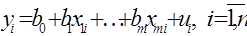 де y – залежна змінна; х1, х2, … хm – незалежні змінні; b0, b1, … bm – параметри моделі, для яких потрібно буде знайти оцінки; u – збурення або залишок (випадкова складова). Тоді оціночне рівняння для даної моделі буде: