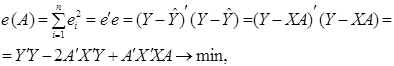 де символ штрих (¢) означає операцію транспонування. Знайдемо частинну похідну даного виразу за компонентами вектора A і прирівняємо до нуля: