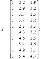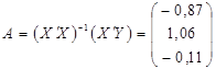 Вектор оцінок А знайдемо користуючись формулою Знаходимо добуток двох матриць, використовуючи стандартну офісну програму Excel. Для цього заносимо елементи вектора Y, матриць Х та