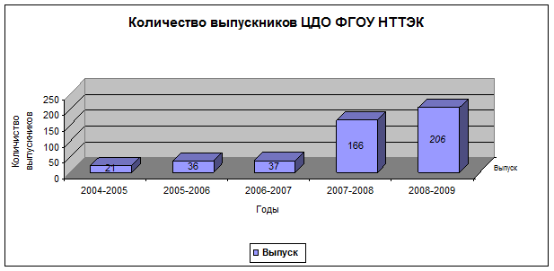 Начиная с 2004-2005 учебного года, количество выпускников ЦДО ежегодно увеличивалось, что наглядно можно увидеть на рисунке 1.
