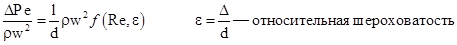 Обозначим: Тогда Отсюда: Коэффициент l — коэффициент путевых потерь, или коэффициент гидравлического сопротивления по длине. Он определяется по эмпирическим зависимостям, полученным на основании экспериментальных исследований, в трубах с искусственной шероховатостью в зависимости от области сопротивления. В результате обработки экспериментальных данных, полученных при испытаниях в трубах с искусственной шероховатостью был получен график, названный графиком Никурадзе. Он показывает зависимость l от числа Рейнольдса и относительной шероховатости . При его составлении измеряли количество протекающей жидкости, меняли диаметр труб, искусственно наносили шероховатость. По полученным физическим параметрам потоков рассчитывали значение числа Рейнольдса и коэффициент путевых потерь.