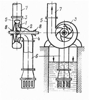 а б Рис. 3. Схемы центробежных насосов: схема установки насоса