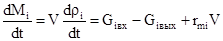 Можно записать уравнение мат.баланса для каждого компонента: DМi = VDri = Мiвх - Мiвых В общем случае уравнение мат.баланса имеет вид: DМi = VDri = Мiвх - Мiвых + rmiVt здесь rmi — масса компонента i, образующаяся в единице объема за единицу времени. Аналогично: