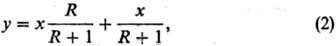 При работе колонны в адиабатических условиях и равенстве молярных теплот испарения компонентов в каждом сечении укрепляющей части (выше ввода питания) концентрация ЛЛК в паре связана с его концентрацией в жидкости х уравнением т. наз. рабочей линии: