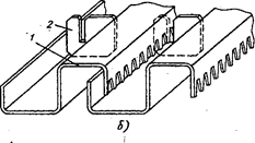 Тарелки из S-образных элементов (рис. VII-8) являются разновидностью колпачковых тарелок и состоят из отдельных элементов, каждый из которых образует одновременно полость для паров и жидкости.. Профиль S-образного элемента имеет повышенную жесткость, что позволяет изготавливать их из стального листа толщиной 2 мм и при диаметре колонны до 4000 мм не применять промежуточных опорных балок.