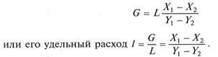 где G – количество экстрагента; L – количество исходного растворителя; Y1 и Y2 – содержание распределяемого компонента в экстракте и экстрагенте, кг компонента/кг экстрагента; Х1 и Х2 –содержание распределяемого компонента в исходном растворе и рафинате, кг компонента/кг исходного растворителя. Из уравнения (12.3) можно определить необходимый расход экстрагента