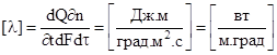 Коэффициент теплопроводности l показывает, какое количество тепла проходит вследствие теплопроводности в единицу времени через единицу поверхности теплообмена при падении температуры на 1 градус на единицу длины нормали к изотермической поверхности. Его величина зависит от природы вещества, его структуры, температуры и некоторых других факторов. При обычных температурах и давлениях лучшими проводниками тепла являются металлы, худшими — газы.