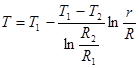 Отсюда Окончательно: Как видно из (4.14) имеет место логарифмический закон распределения температуры по радиусу цилиндра. Градиент температуры на внутренней поверхности цилиндра равен: