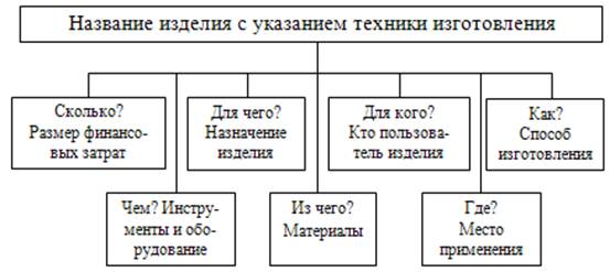 Инструменты и оборудование. В данном разделе приводится описание инструментов и оборудования, применяемых для изготовления изделия в выбранной технике, а также обоснование выбранных инструментов для изготавливаемого в дальнейшем изделия. Информация может быть представлена как текстом, так и в виде таблицы или схемы. Материалы. В данном разделе приводится описание материалов, используемых для изготовления в выбранной технике, а также обоснование материалов для изготавливаемого в дальнейшем изделия. Информация может быть представлена как текстом, так и в виде таблицы или схемы. Данный раздел может содержать также конфекционную карту, которая представляет собой образцы возможных используемых материалов. Правила техники безопасности. Санитарно-гигиенические требования. Данный раздел содержит информацию о правилах безопасного выполнения тех или иных видов работ. Теоретический материал учащимся излагается своими словами и может сопровождаться иллюстрациями. Технология изготовления. В этом разделе размещают технологическую карту изготавливаемого изделия. При этом технологическая карта должна быть представлена в виде таблицы и содержать следующие графы:
