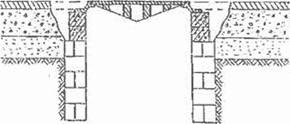 Операцию производят на картах площадью более 3 м сразу после укладки литой смеси. С этой целью специально обученный дорожный рабочий совковой лопатой разбрасывает рассевом в одну щебенку черный щебень из расчета 6-3 кг/м2. Под собственной массой щебень втапливается в покрытие и закрепляется в нем. Невтопившийся щебень затем сметается и собирается для повторного использования. Технико-экономические показатели отремонтированного асфальтобетонного покрытия (расчет на 100 м2 при толщине 50 мм) Затраты труда 4, 5 ч/дня Выработка на одного рабочего в день 20, 3 м2 Прямая заработная плата звена 23 р. 26 к. С учетом масштаба цен на 01.01.1995 г. (23, 26x6175)= 143630 р. 2. Ремонт асфальтобетонного покрытия у люка смотрового колодца 2.1. Перед началом работ место ремонта ограждают, как это показано на рис. 8. После этого необходимо убедиться в отсутствии скопления газов в колодце. Для этого нужно открыть крышку колодца и с помощью сертифицированных газоанализаторов произвести проверку, При отсутствии газоанализаторов наличие газов можно установить рудничной предохранительной бензиновой лампой. Зажженная рудничная лампа опускается на веревке в колодец. Для того, чтобы удобнее наблюдать за ее пламенем в колодце, к лампочке монтируют зеркало, устанавливаемое под углом 45°. При обнаружении газа в колодце открывают крышки люков нескольких смотровых колодцев и коммуникационную сеть проветривают. Принудительное проветривание производится установкой вентилятора над колодцем. Удалять газ можно и промывкой колодца и коллектора. При этом, движение воды, подаваемой под давлением, создает и движение воздуха. 2.2. Убедившись в отсутствии газа, в колодце по центру горловины колодца устанавливают с помощью гидравлического крана, смонтированного на бортовой машине, гидравлический съемник (рис. 9). Головку съемника вводят в люк и с помощью рычага раздвигают захваты головки и подводят их под бортик люка. После установки съемника включают в действие гидроцилиндр и люк извлекают из гнезда. После демонтажа люка съемник краном грузят на платформу машины и перемещают к следующему колодцу. Производительность съемника 12 люков в час. После уборки отходов от демонтажа люка в горловину вставляют специальное устройство (рис. 10). с помощью которого осуществляют работы по ремонту стенок горловины и опорного кольца люка. Рабочий, находясь в обечайке устройства, производит указанные работы, используя ее, как опалубку для укладки быстротвердеющей цементобетонной смеси или как подмости для установки железобетонных сегментов в основание люка (см. рис. 10). После ремонта колодца и выведения отметки люка на отметку существующего покрытия люк закрывают крышкой и производят обрубку покрытия вокруг него по намеченному контуру и восстанавливают дорожную одежду.
