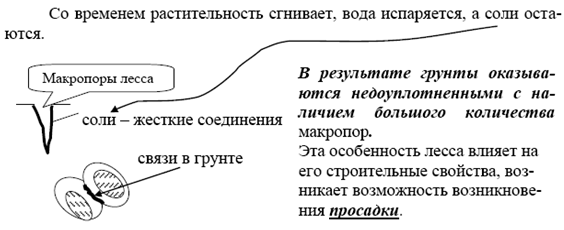 В результате минеральные частицы падают в крупные поры, и грунт превращается в обычный суглинок с дальнейшим развитием просадки.