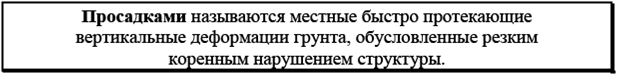Просадкам подвержены лессы и многие разновидности лессовидных пород. Около 15% территории России занято примерно такими грунтами. Украина, Закавказье, Забайкалье, Китай имеют на карте желтый цвет – цвет лесса. Гипотеза происхождения лесса: