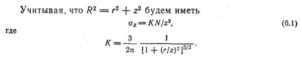 Аналогично могут быть найдены остальные пять компонентов напряжения в точке М1. Подставляя в формулу (6.1) значение коэффициента К, найденного по табл. 6.1, определяют вертикальное сжимающее напряжение σ Z, развивающееся в грунтах при действии сосредоточенной силы.