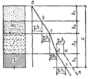 где n – число разнородных слоев в пределах глубины z; Удельный вес водопроницаемых грунтов, залегающих ниже уровня грунтовых вод, принимается с учетом взвешивающего действия воды.
