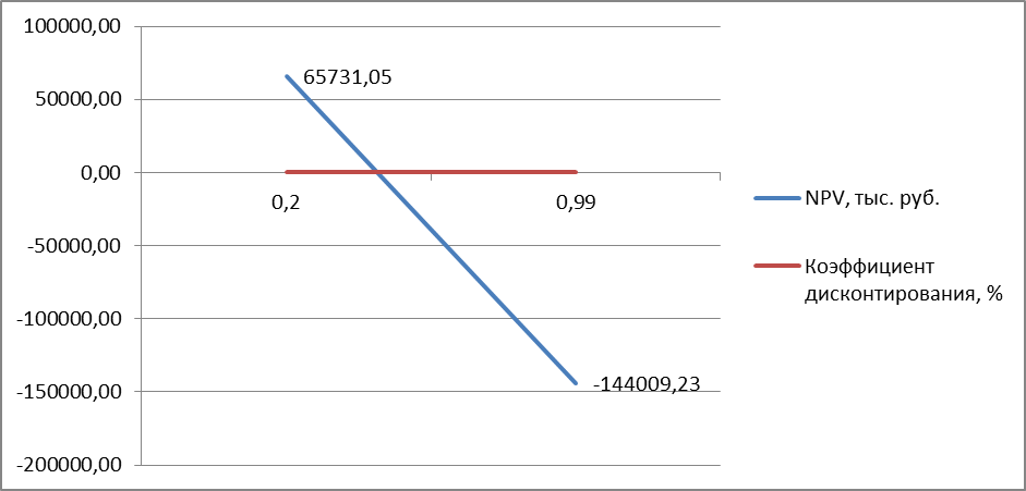 Рисунок 6.3 – Зависимость NPV от коэффициента дисконтирования