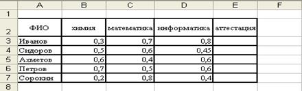 5. Копируем формулу для остальных. Упражнение 2. Аттестация проводилась по 3 предметам и надо определить аттестован ли студент по всем предметам. 1. Перейти на Лист2. Переименовать его на Задание2. 2. Заполнить таблицу по образцу.