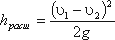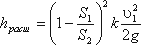 где S1, S2 - площадь поперечных сечений 1-1 и 2-2. Это выражение является следствием теоремы Борда, которая гласит, что потеря напора при внезапном расширении русла равна скоростному напору, определенному по разности скоростей