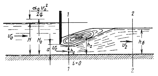 где hz - глубина в том сечении, где наблюдается максимальное сжатие истекающей из-под затвора струи. Глубина hz определяется из зависимости
