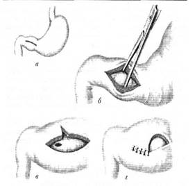 а, б - разрез в безсосудистой зоне; в, г - ликвидация осложнения