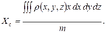 Если в формулах для координат центра масс (3.2.3) перейти от суммирования к интегрированию, то координата