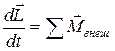 где Между частицами действуют внутренние силы. Примем без доказательства утверждение, что их суммарный момент равен нулю. Тогда уравнение изменения момента импульса принимает следующий вид: