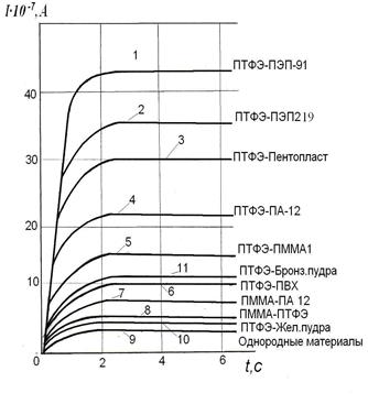 Рис.1 Зависимость тока трибоэлектризации от природы материалов