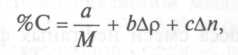 где %С — процентное содержание углерода в кольчатых структурах, %; Для числа колец К выведено аналогичное уравнение: