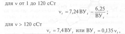 Это относится также и к углеводородам только с шестичленными циклами ( • чем больше циклов в молекуле, тем выше вязкость; • чем больше в молекулах сложных углеводородов боковых парафиновых цепей при одинаковом числе колец, тем выше вязкость; • разветвление боковых цепей, в свою очередь, увеличивает вязкость. Вязкость сильно зависит от температуры, поэтому всегда указывается температура. В технических требованиях на нефтепродукты обычно нормируется вязкость в основном при температуре 50 и 100 °С. Для оценки вязкостно-температурных свойств нефтяных масел предложен индекс вязкости: отношение вязкостей при темпе- ратурах 50 и 100 °С и др. Индекс вязкости (ИВ) — условный показатель, представляющий собой сравнительную характеристику испытуемого масла и эталонных масел. Значение ИВ рассчитывается по специальным таблицам на основании значений Вязкость — не аддитивное свойство и для смеси нефтяных дистиллятов или масел определяется экспериментально или по специальным номограммам.