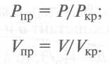 В приведенных состояниях различные вещества при равных приведенных температурах и давлениях имеют равные приведенные объемы.