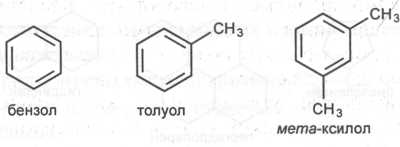 Арены (ароматические углеводороды, содержащие одно или несколько бензольных колец, в том числе конденсированных) в нефти представлены соединениями следующих рядов: • бензол и его гомологи, • нафталин и его гомологи, • сложные конденсированные системы, состоящие из 3, 4 и 5 конденсированных ядер; • гибридные, или смешанные, углеводороды, состоящие из нафтеновых и ароматических фрагментов. Экспериментально было установлено, что для каждой из фракций нефти характерны свои ароматические углеводороды. Причем с увеличением молекулярной массы фракции содержание аренов в них повышается; ароматические углеводороды становятся все более конденсированными. По сравнению с другими группами углеводородов ароматические обладают наибольшей плотностью. По вязкости они занимают промежуточное положение между парафиновыми и нафтеновыми. Ароматические углеводороды с боковыми цепями повышают детонационную стойкость бензинов, но снижают качество бензинов, реактивных и дизельных топлив, так как ухудшают характеристики их сгорания и экологическую ситуацию. Согласно требованиям ГОСТ, содержание ароматических углеводородов в реактивном топливе не должно превышать 20—22 % (мае.). Допустимое их количество обусловлено необходимостью иметь авиакеросины с повышенной плотностью. Моноциклические ароматические углеводороды с длинными боковыми изопарафиновыми цепями придают смазочным маслам хорошие вязкостно-температурные свойства. Весьма нежелательны в этом отношении ароматические углеводороды без боковых цепей и полицикли- ческие. Однако для повышения химической стабильности смазочных масел полициклические углеводороды необходимо оставлять в них в небольшом количестве. Ароматические углеводороды по сравнению с другими группами углеводородов обладают высокой растворяющей способностью по отношению к органическим веществам, но содержание их во многих растворителях нефтяного происхождения ограничивают из-за высокой токсичности (предельно допустимая концентрация паров бензола в воздухе составляет 5 мг/м3, толуола и ксилолов — 50 мг/м3). В настоящее время индивидуальные ароматические углеводороды применяются в основном в качестве сырья для нефтехимического синтеза, а также в производстве взрывчатых веществ. Для бензиновых фракций характерно наличие почти всех изомеров гомологов бензола. При этом, чем более насыщена углеродом молекула и чем более она разветвлена, тем больше их содержится во фракции. Например: