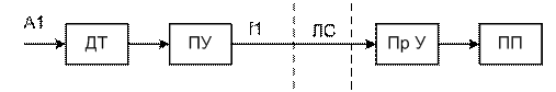 Системы телеизмерения предназначены для передачи значений контролируемых параметров на значительные расстояния. Необходимость в таких системах вызвана тем, что при больших расстояниях передачи и использовании обычных электрических способов измерений значительно возрастают погрешности измерения за счет непостоянства параметров линии связи. Обычные методы измерений принципиально непригодны в случае контроля параметров подвижных объектов. Таким образом, основная задача, которая решается устройствами телеизмерения, заключается в том, чтобы обеспечить возможность измерения электрических и неэлектрических параметров на больших расстояниях с допустимой точностью. Принцип построение системы телеизмерения (ТИ) поясняет рис. 1.7. Датчик телеизмерения (ДТ) преобразует контролируемую величину А1 в соответствующий первичный сигнал. Передающее устройство (ПУ) преобразует этот сигнал во вспомогательную величину f1, удобную для передачи по линии связи (ЛС). Приемное устройство (ПрУ) преобразует принятую величину в форму, удобную для отсчета, и приемный прибор (ПП) воспроизводит измеряемую величину.