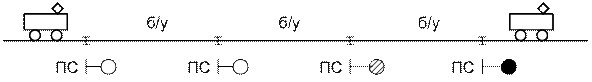 Характер схемы автоблокировки определяют в основном три условия: система сигнализации (трехзначная, четырехзначная, многозначная), род тяги на участке (электрическая или автономная), а также способ передачи информации о состоянии впереди расположенных (по ходу движения) блок-участков (при помощи линейной цепи или с использованием рельсовых цепей). На участках, оборудованных трехзначной сигнализацией, проходным светофором подаются такие сигналы (рис. 2.31): – один зеленый огонь – разрешается движение с установленной скоростью, впереди свободны два или более блок – участка; – один желтый огонь – разрешается движение с готовностью остановиться, следующий светофор закрыт; – один красный огонь – стой, запрещается проезжать сигнал.