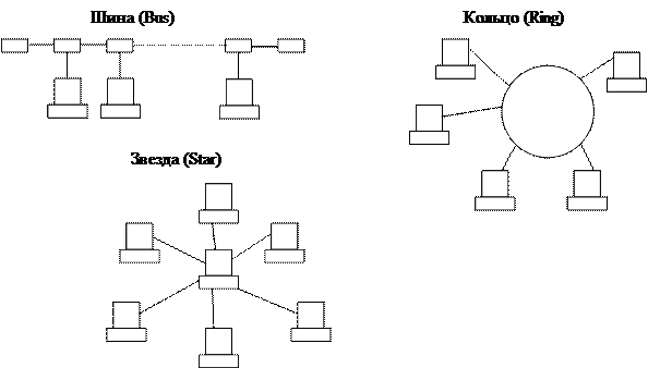 Рис. 3.23. Основные топологические структуры локальных вычислительных сетей