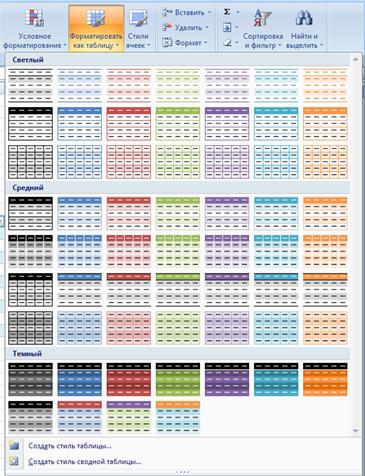 В Office Excel 2007 можно быстро форматировать данные таблиц на листе, используя темы и конкретные стили. Применение темы. Тема представляет собой заранее определенный набор цветов, шрифтов, линий и эффектов заливок, который можно применить ко всей книге или к ее отдельным элементам, например, диаграммам или таблицам. Они могут помочь создавать отлично смотрящиеся документы. Можно также без труда создать собственную тему для единообразного, профессионального вида документов, которую можно применить ко всем книгам Excel и к другим документам выпуска 2007 Office. При создании темы можно отдельно настроить цвета, шрифты и эффекты заливки, внося изменения в отдельные или сразу во все параметры.