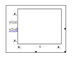4. В среднем черном прямоугольнике по оси Ох наберем х. В среднем черном прямоугольнике по оси Oy наберем сначала y1(x), затем поставим запятую «,» и наберем y2(x). Получим: