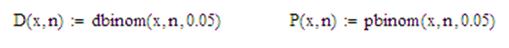 Затем на основе dbinom и pbinom формируются две функции пользователя,